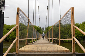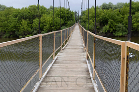 Аварийно-восстановительные работы в рамках муниципального контракта проводятся также на пешеходном подвесном мосту в микрорайоне Западный. Сейчас для пешеходов обеспечен безопасный проход по данному мостовому сооружению.