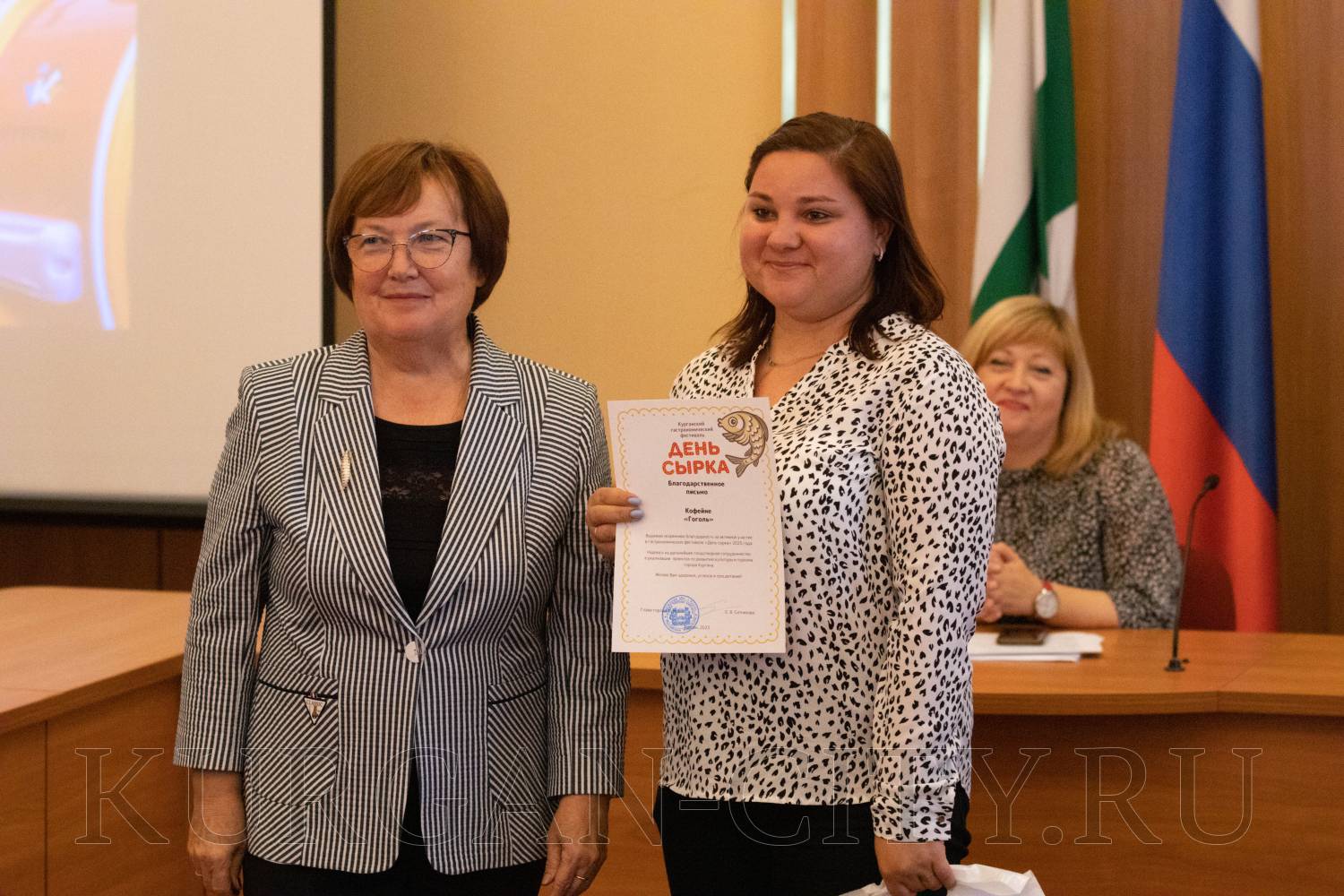 В Кургане подвели итоги четвертого гастрономического фестиваля «День сырка-2023» и первого гастрофестиваля «Курганская каралька». Директор департамента экономического развития, предпринимательства и торговли администрации города Кургана Анна Бунина и руководитель Библиотечной информационной системы города Кургана, заместитель председателя рабочей группы муниципальной программы «Любимый город» Людмила Дорофеева вручили ряду предпринимателей и организаций благодарственные письма Главы города Кургана за активное участие в гастрономических фестивалях.