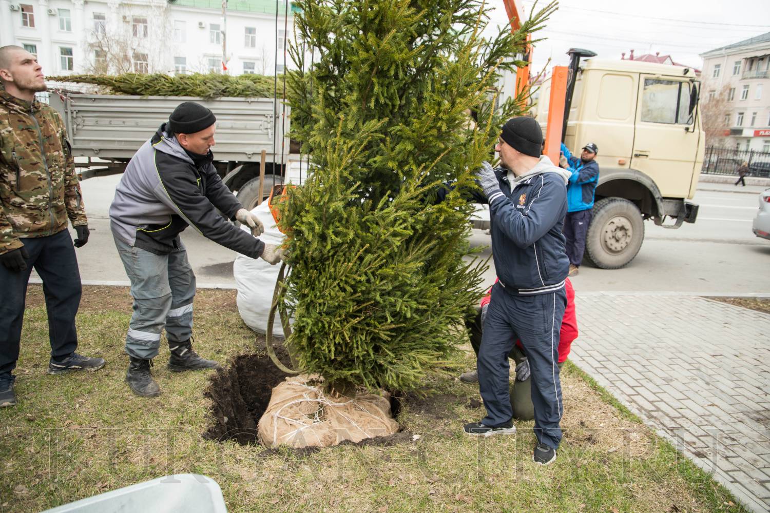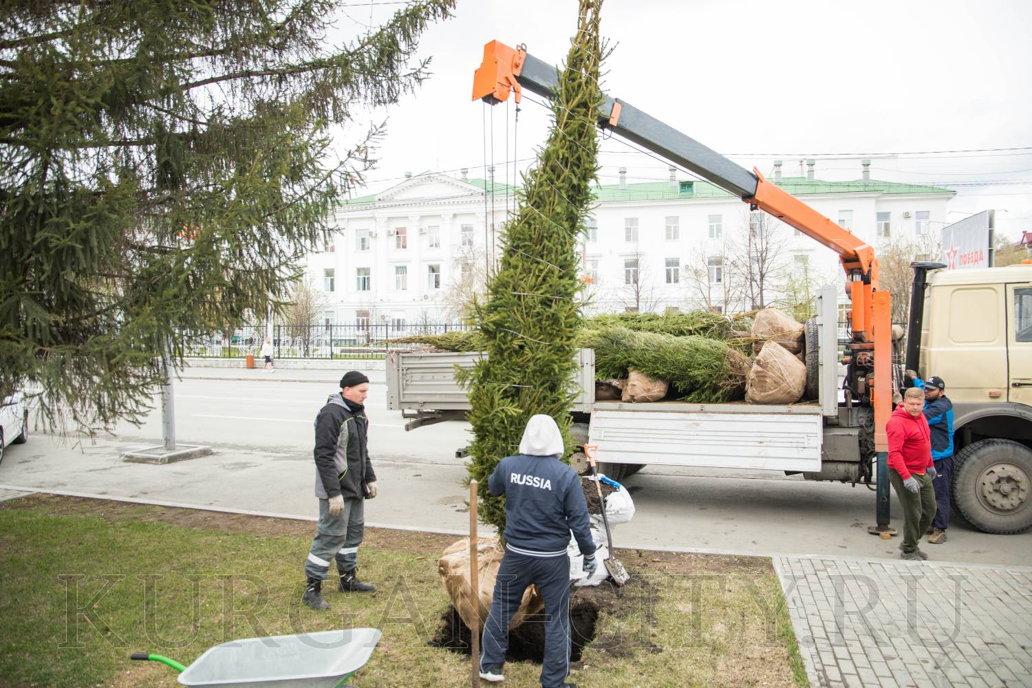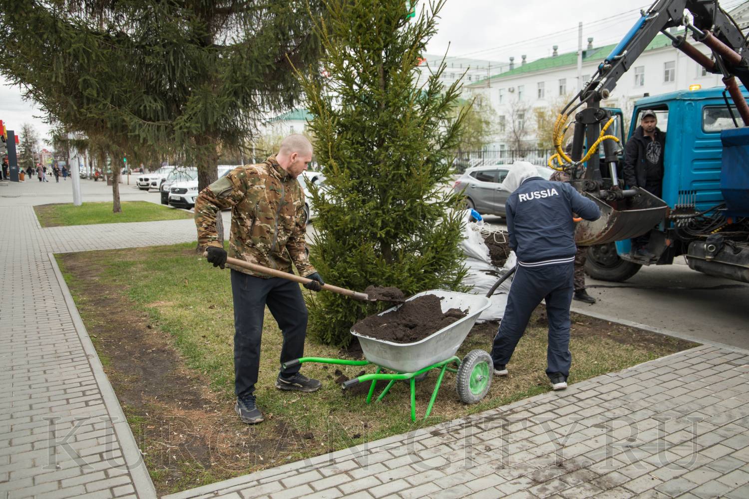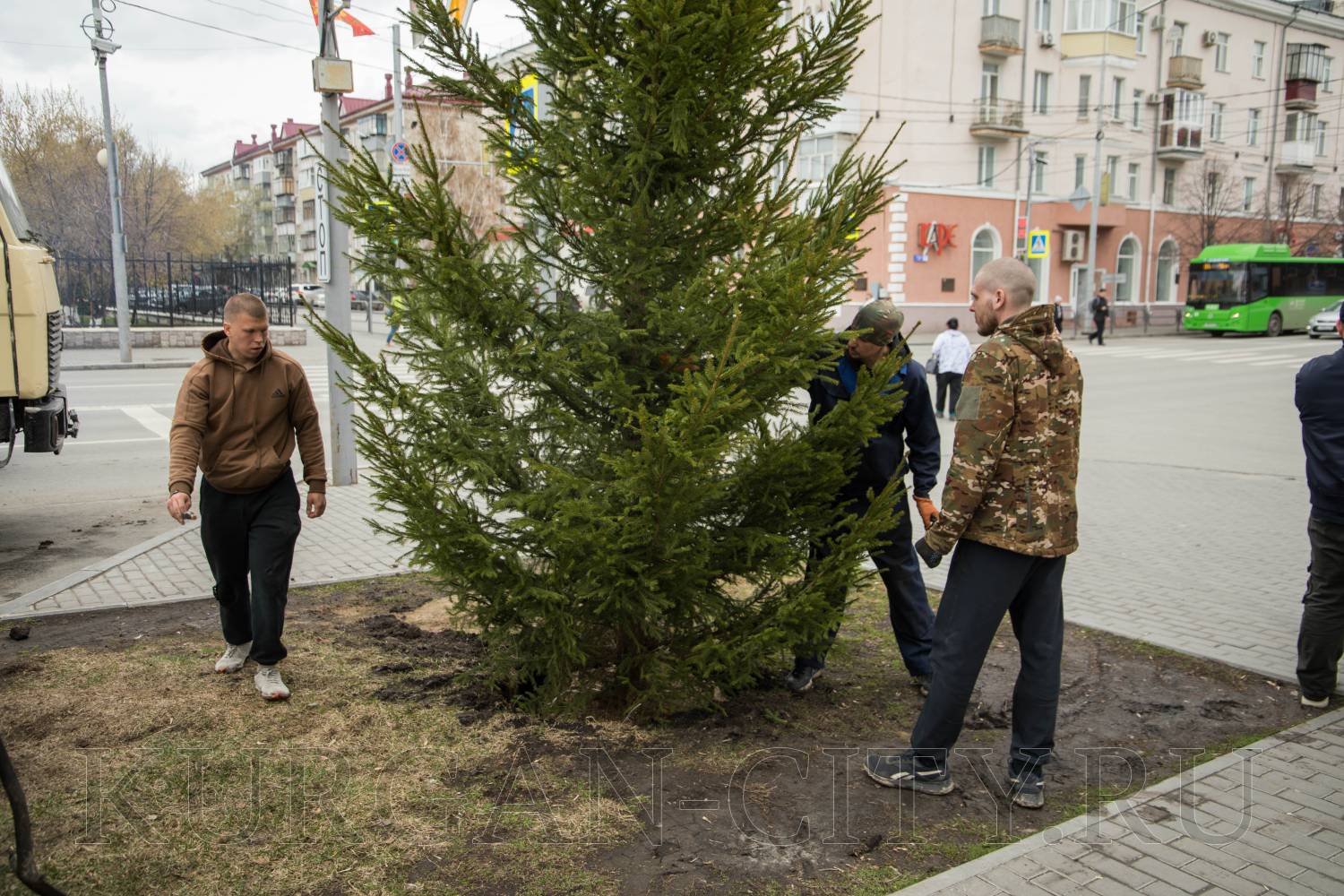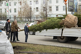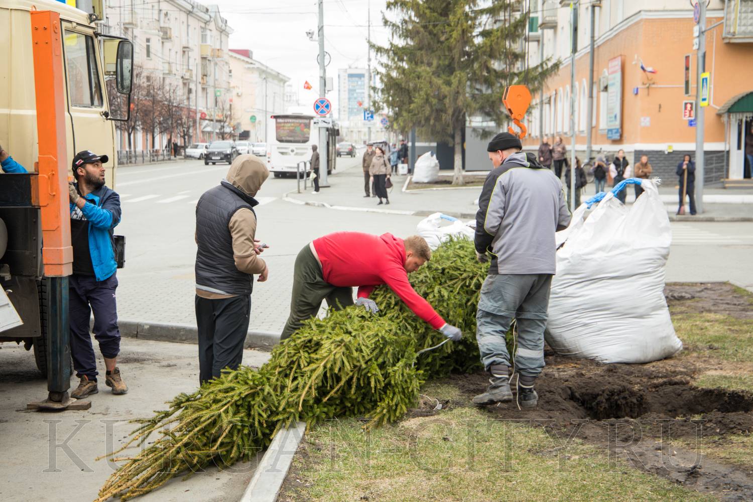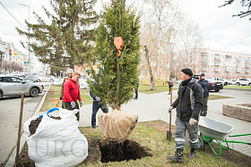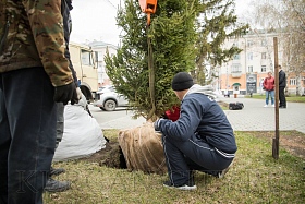 В Кургане в рамках программы по озеленению города началась посадка деревьев в скверах и парках, вдоль улично-дорожной сети. Так, сегодня были высажены молодые здоровые ели вдоль аллеи, расположенной по улице Гоголя.