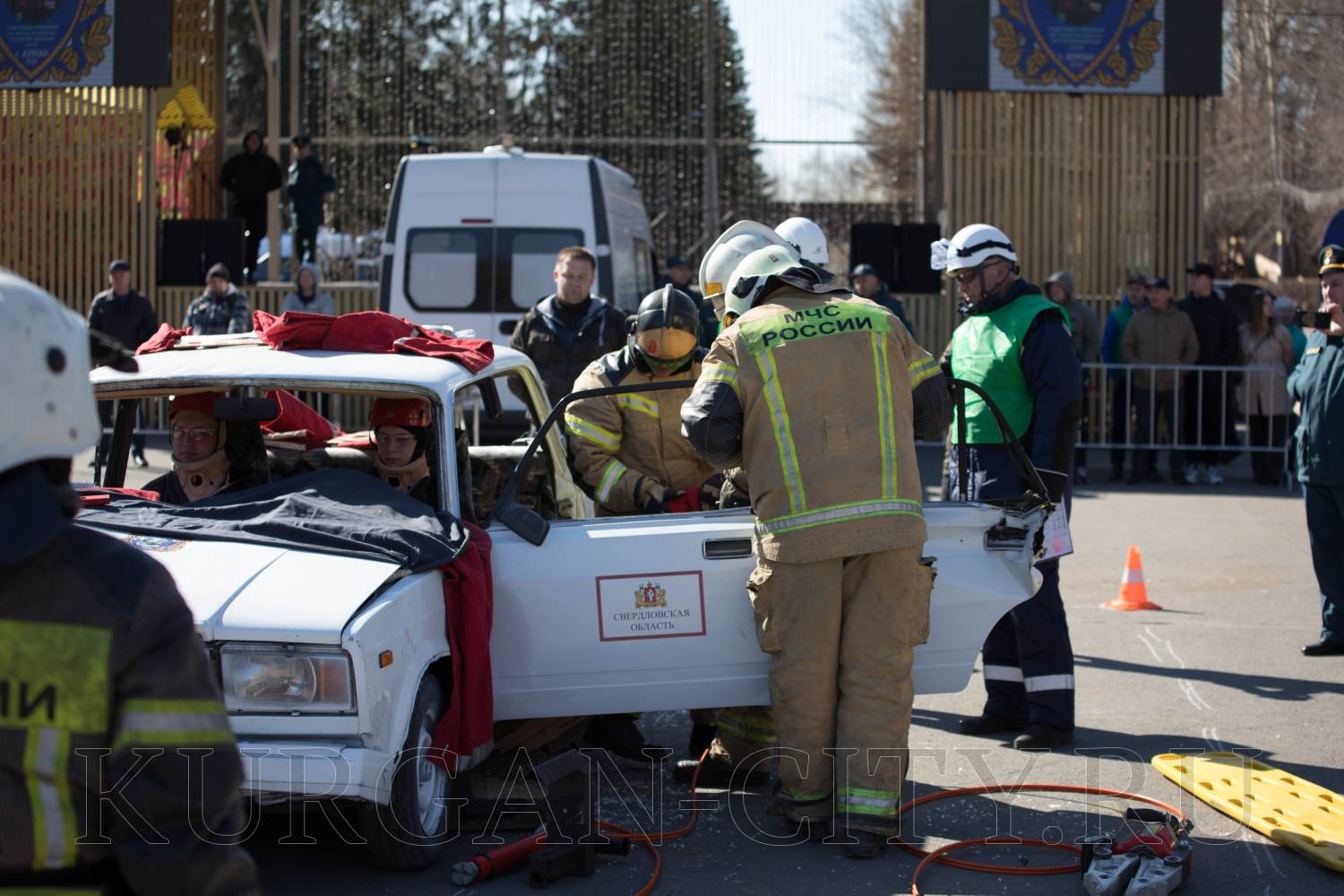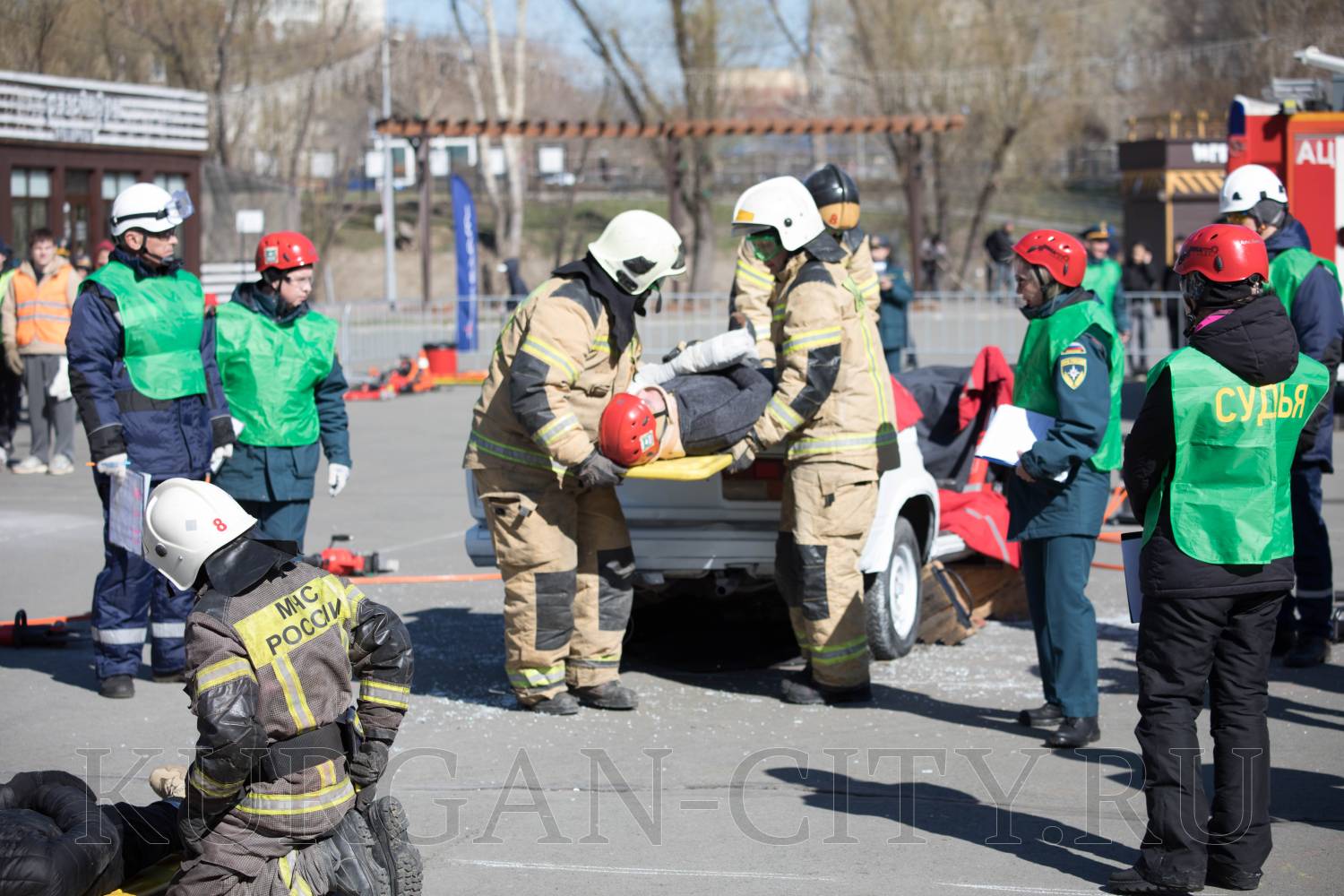 В Кургане проходят соревнования на лучшую команду МЧС России в УрФО по ликвидации ЧС на автотранспорте
