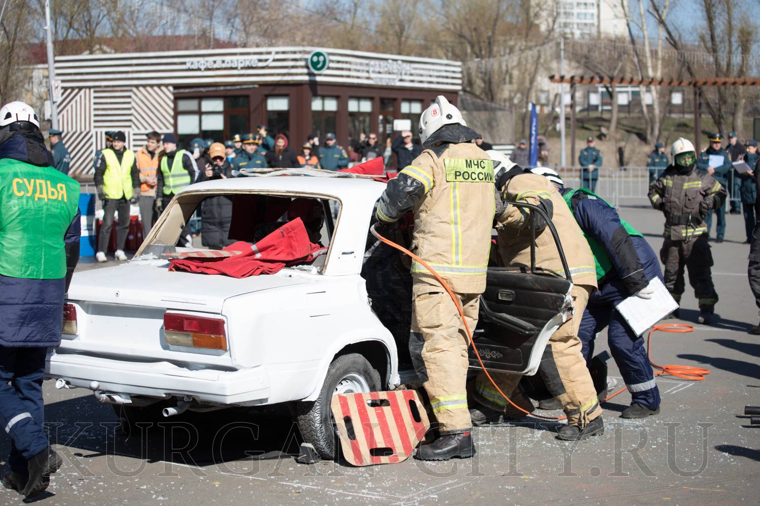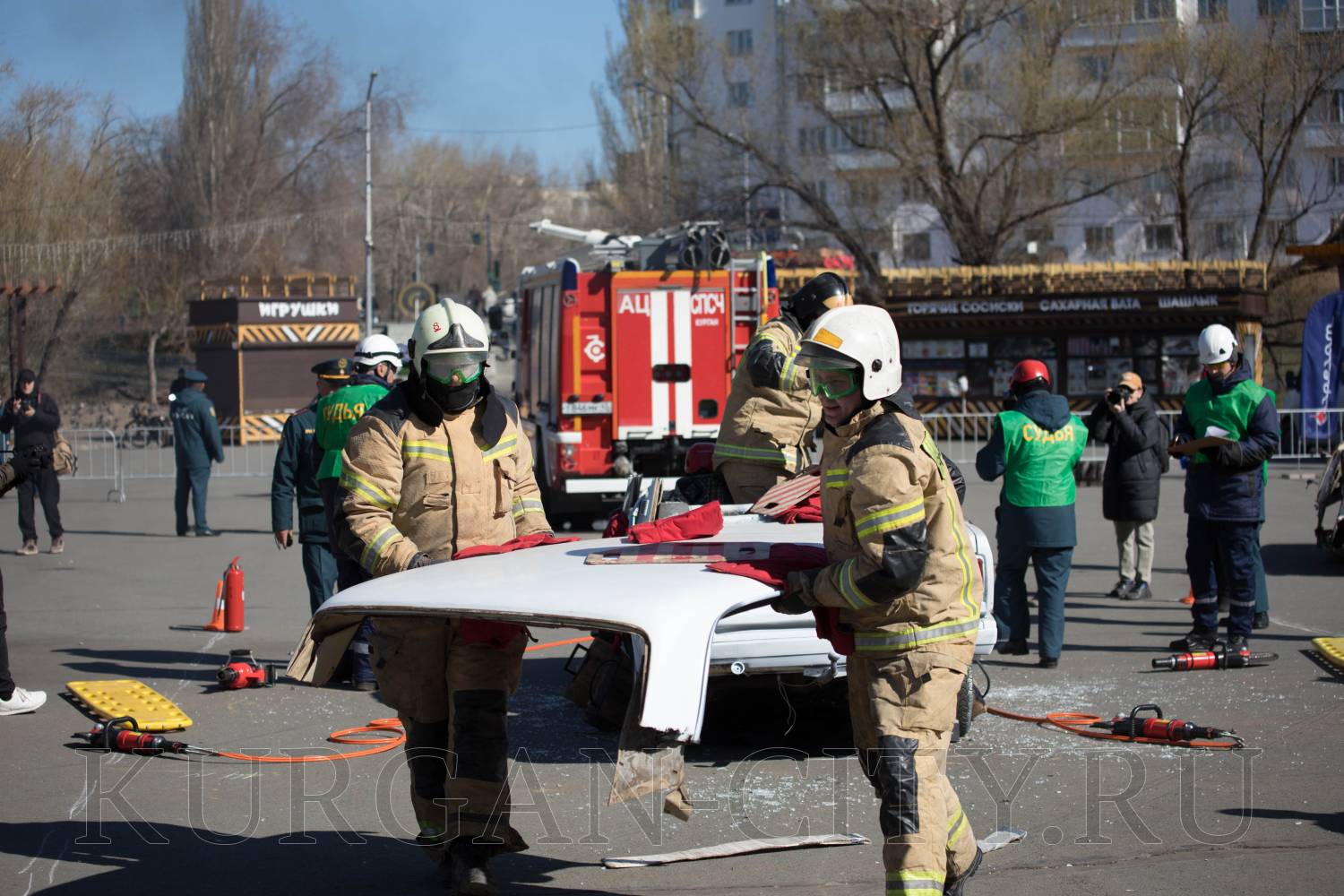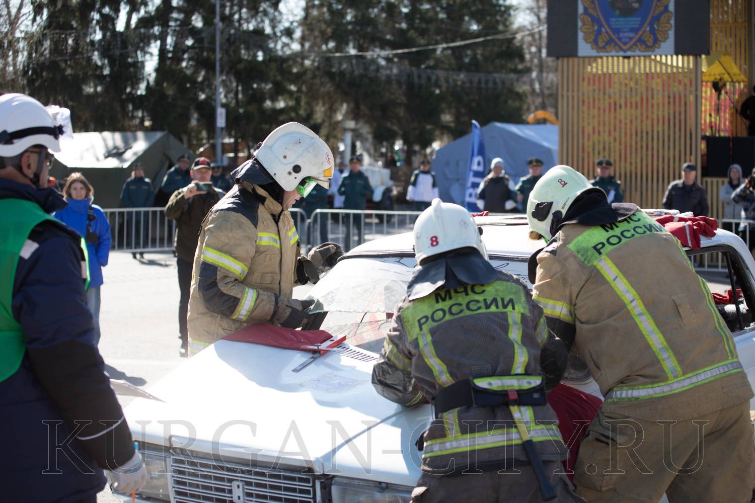 В Центральном парке культуры и отдыха Кургана сегодня прошел второй этап соревнований на звание «Лучшая команда МЧС России по проведению аварийно-спасательных работ при ликвидации последствий аварий на автомобильном транспорте» в 2026 году. На него собрались команды Главного управления МСЧ России по Курганской, Свердловской, Тюменской, Челябинской областям, Ханты-Мансийскому автономному округу – Югре и Ямало-Ненецкому автономному округу. С приветственными словами к командам обратился глава города Кургана Антон Науменко.