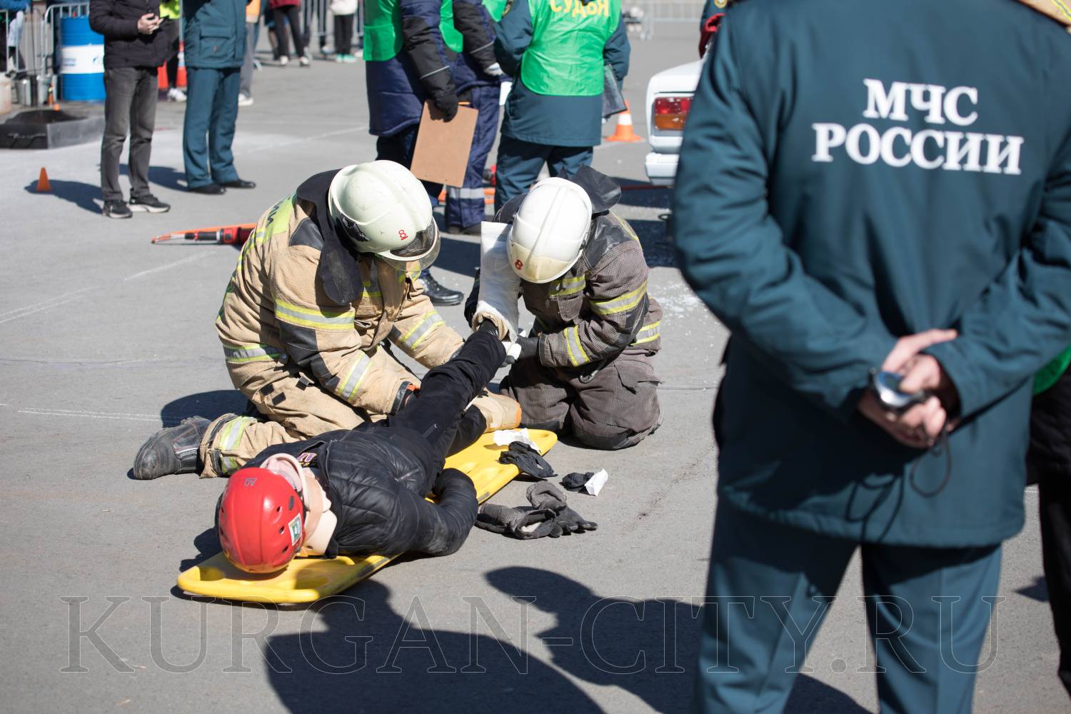 Со словами приветствия к пожарным и спасателям Главный федеральный инспектор по Курганской области Артем Пушкин: «От имени полномочного представителя Президента Уральского федерального округа Артёма Владимировича Жоги и от себя лично приветствую всех участников соревнования. Служба в МЧС - это важная, ответственная работа. По сути дела, это миссия - приходить нашим гражданам на помощь в самых трудных жизненных ситуациях, в условиях чрезвычайных ситуаций. Но еще и очень важно, когда произошло дорожно-транспортное происшествие оперативно прийти на помощь пострадавшим».