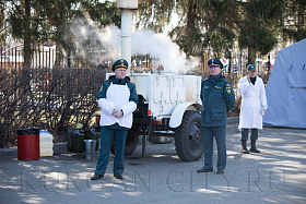 Для гостей и участников соревнования в ЦПКиО работала выставка техники и оборудования чрезвычайного ведомства, а также полевая кухня, где можно было попробовать вкусную кашу.