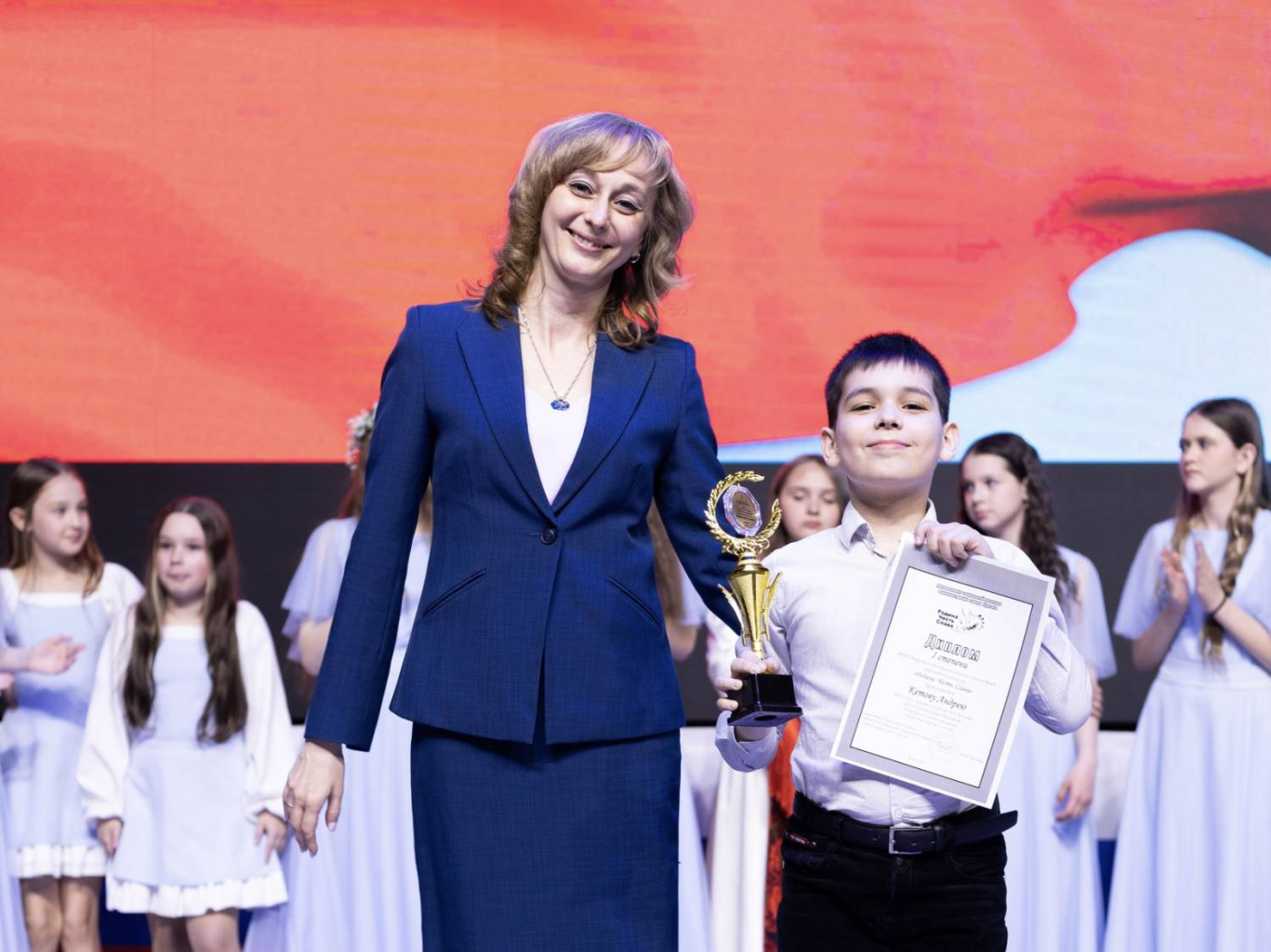 Талантливых ребят и взрослых приветствовала заместитель директора Департамента социальной политики, начальник управления образования Юлия Стефаник. Она поблагодарила каждого за искренность исполнения и за то, что через искусство участники делятся любовью к Родине. «Ваши выступления подарили всем незабываемые эмоции, чувство гордости за страну, напомнили нам о силе единства. Желаю всем участникам вдохновения, удачи и новых творческих побед», — отметила Юлия Викторовна.