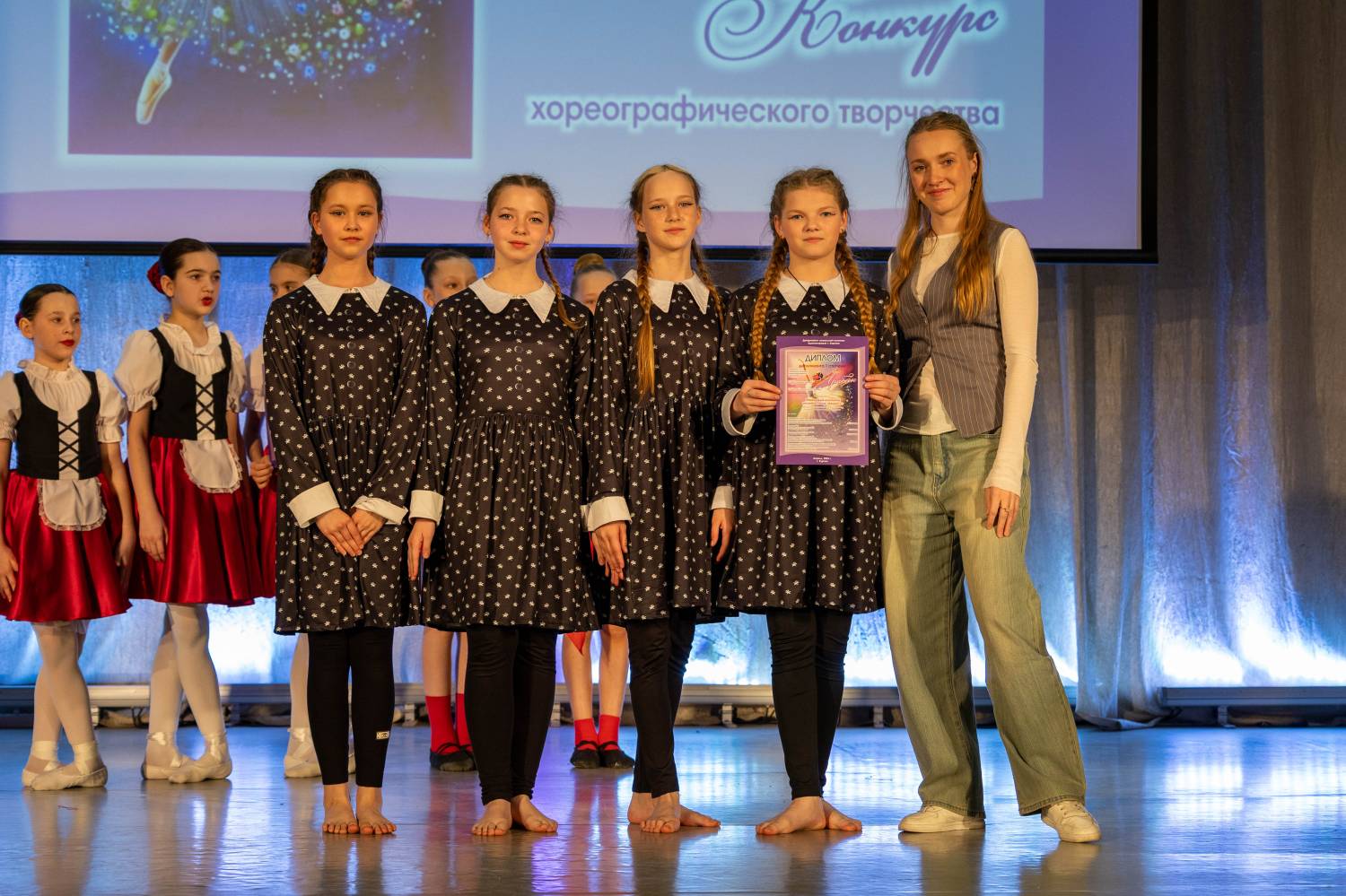 В номинации «Детский танец» победителями признаны хореографический коллектив «Искорки» и ансамбль танца «Жар-птица» ДШИ им. В.А. Громова. Дарья Менщикова, солистка Образцового коллектив ансамбля танца «Веселинка» из этой же Детской школы искусств стала лауреатом 1-й степени в номинации «Классический танец».