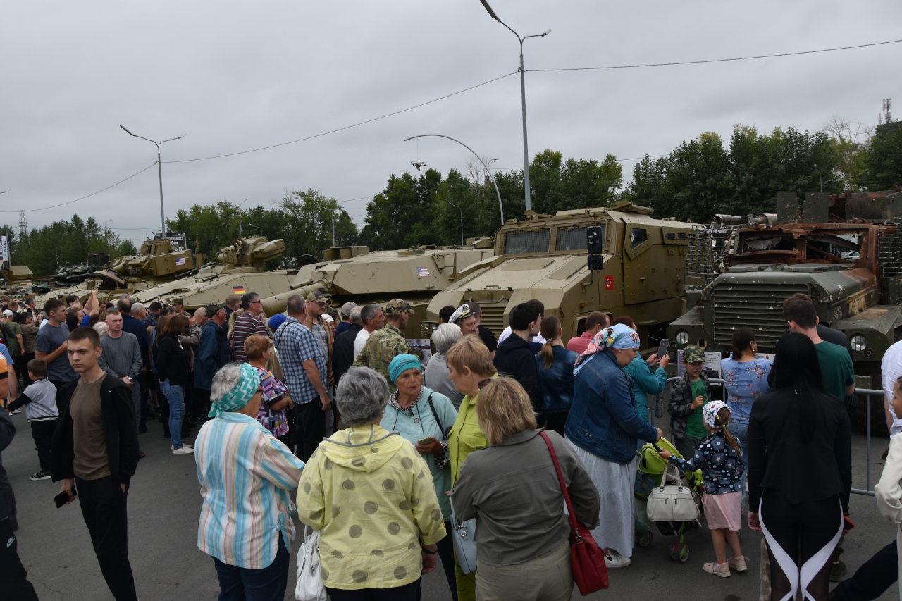 Передвижная выставка является одним из способов выразить благодарность бойцам, которые на передовой СВО противостоят оружию со всего мира. Возле каждой подбитой машины есть информация: кто и при каких обстоятельствах смог уничтожить технику противника.