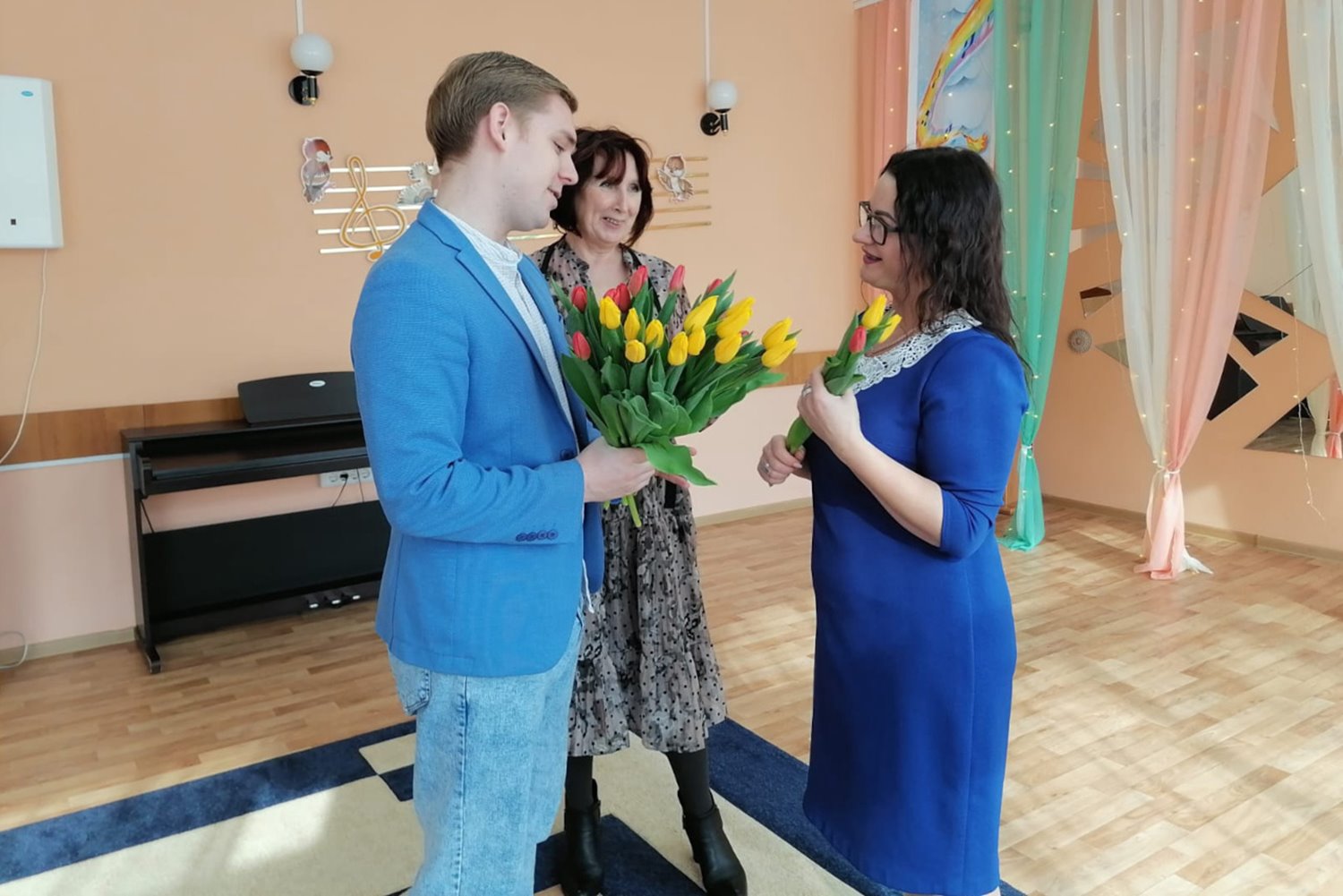 Символом праздника 8 марта является тюльпан, его принято дарить всем женщинам, и сегодня именно эти цветы радовали милых дам. Максим Владимирович посетил и поздравил женщин студии вокала "ДЕКО", дворца детского и юношеского творчества города Кургана, МБДОУ города Кургана «Центр развития ребенка – детский сад № 115».