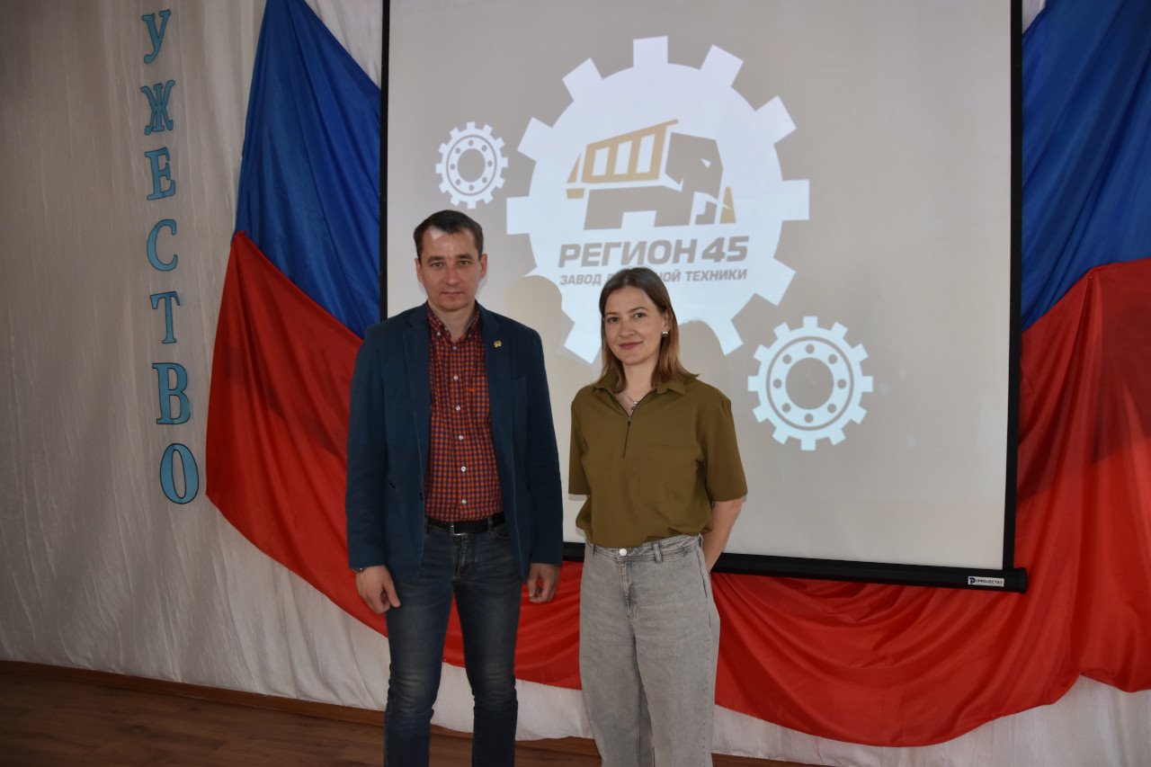 Перед учениками 7-х и 11-х классов школы выступил представитель завода дорожной техники «Регион 45». Докладчик рассказала школьникам о работе предприятия, о количестве сотрудников и их основных задачах, о специальностях, которые необходимо получить для дальнейшего трудоустройства на завод. Работающий на территории города завод прошел немалый путь и приобрел богатый опыт в сфере производства дорожной специализированной техники. Предприятие активно развивается, и модельный ряд выпускаемой продукции постоянно пополняется новыми машинами для строительных, дорожных и коммунальных работ.