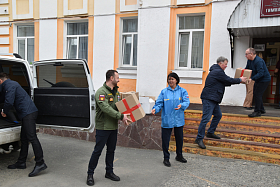 В город Курган с гуманитарной миссией прибыла делегация из Свердловской области в составе депутата Законодательного Собрания Свердловской области Алексея Коробейникова, Председателя Думы городского округа «город Ирбит» Павла Томшина, депутата Михаила Смердова и заместителя Главы городского округа «город Ирбит» Ирины Дерябиной.