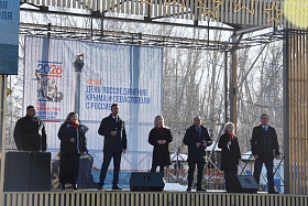 В ЦПКиО было многолюдно. Здесь собрались руководители и сотрудники органов власти, учреждений и организаций города, представители общественных объединений, молодежь и люди старшего поколения. Все они пришли, чтобы поддержать знаменательную дату в истории нашей страны. На концерте прозвучали патриотические песни.