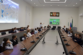 Встреча в форме диалога состоялась в зале, где проходят заседания городской Думы. Дети разместились на местах депутатов и каждый смог представить себя в роли народного избранника. Ребятишкам разрешили сделать фотографию на депутатском месте и поговорить в микрофон.